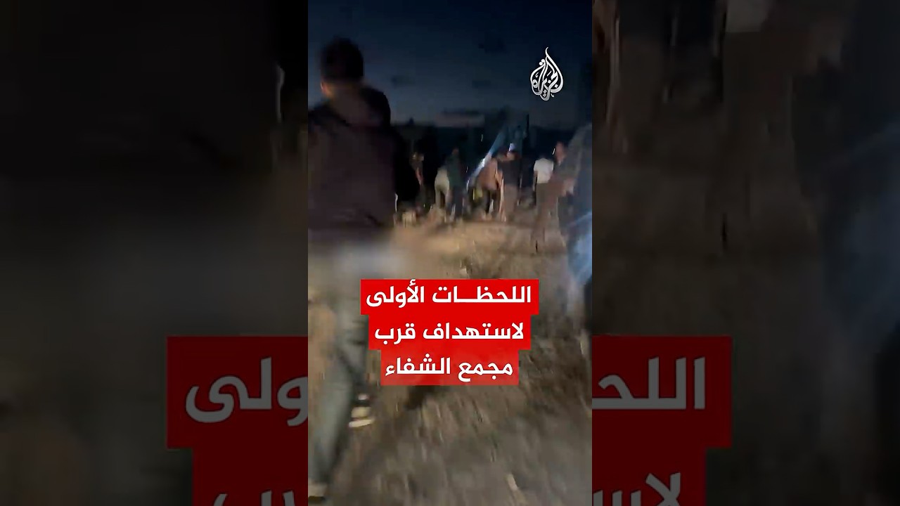 اللحظات الأولى بعد استهداف الاحتلال لمكان قرب مجمع الشفاء في مدينة غزة #AlJazeera Arabic # قناة الجزيرة