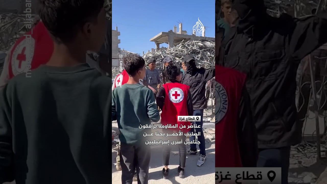 عناصر من المقاومة يرافقون الصليب الأحمر بحثا عن جثامين أسرى إسرائيليين #AlJazeera Arabic # قناة الجزيرة
