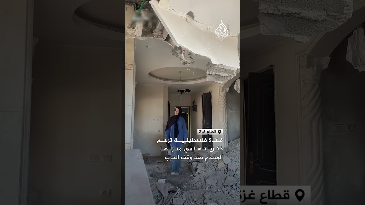 فتاة فلسطينية ترسم ذكرياتها في منزلها المهدم بعد وقف الحرب على قطاع غزة  #AlJazeera Arabic # قناة الجزيرة