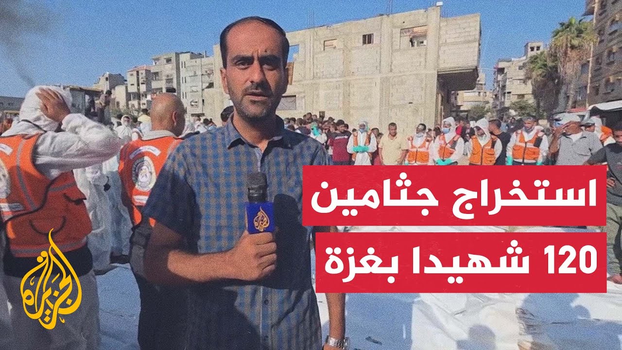 مراسل الجزيرة: فرق الدفاع المدني في غزة تستخرج جثامين 120 شهيدا دفنوا في مقبرة مؤقتة #AlJazeera Arabic # قناة الجزيرة