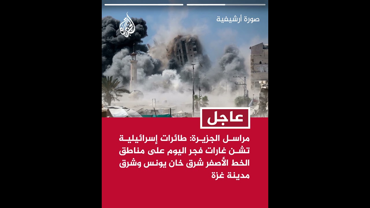 مراسل الجزيرة: طائرات إسرائيلية تشن غارات فجر اليوم على مناطق الخط الأصفر شرق خان يونس وشرق مدينة غزة