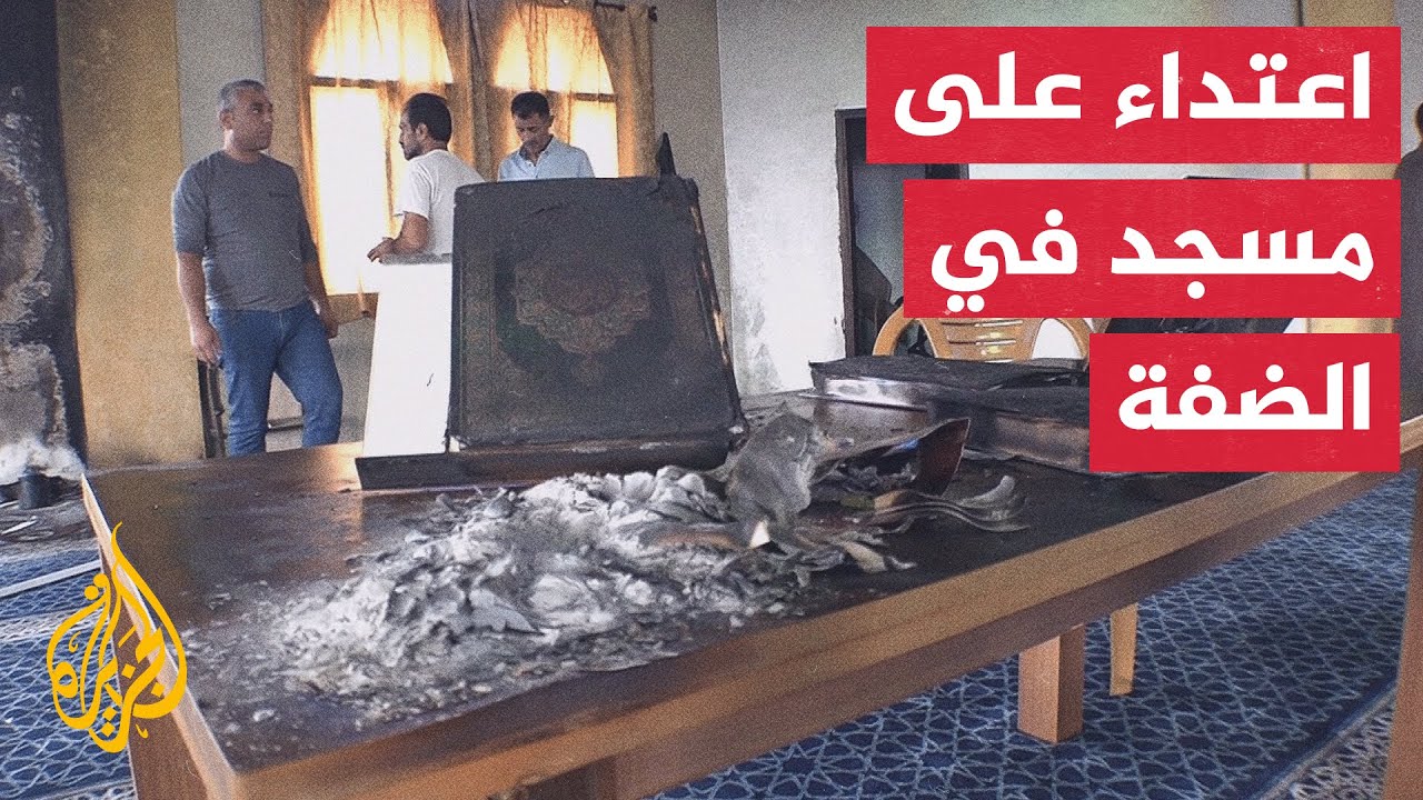 مستوطنون يحرقون مسجدا شمال غرب سلفيت ويخطون شعارات عنصرية على جدرانه #AlJazeera Arabic # قناة الجزيرة