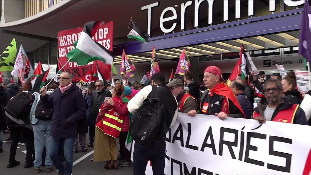 مظاهرة في مطار شارل ديغول للمطالبة بوقف شحنات الأسلحة المتجهة إلى إسرائيل #AlJazeera Arabic # قناة الجزيرة