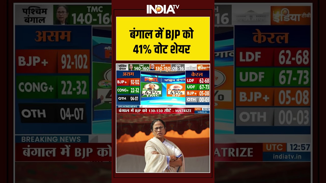 बंगाल में BJP को 41% वोट शेयर #mamatabanerjee #tmc #bjp #opinionpoll #ytshorts #youtubeshorts #IndiaTV