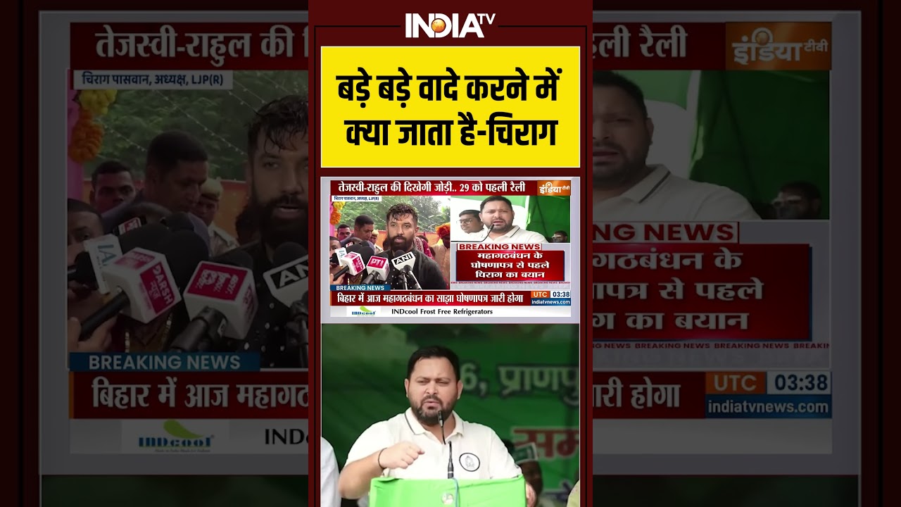 ‘बड़े-बड़े वादे करने में क्या जाता है’? #chiragpaswan #tejashwiyadav #mahagathbandhan #shorts #IndiaTV