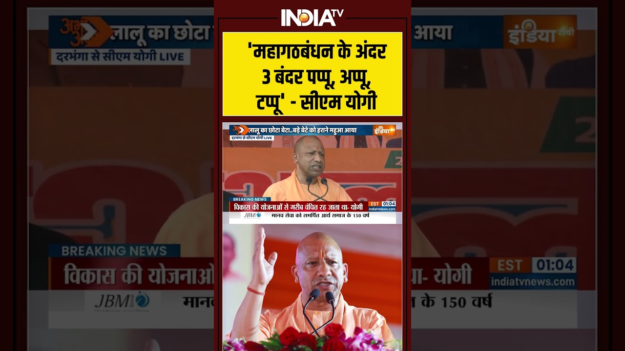 ‘महागठबंधन के अंदर 3 बंदर पप्पू, अप्पू, टप्पू’ #cmyogi #darbhanga #mahagathbandhan #biharchunav2025 #IndiaTV