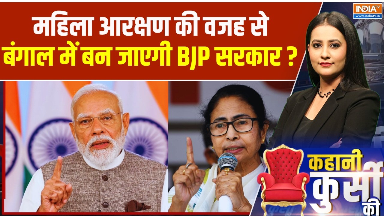 कहानी कुर्सी का…4 दिन बाद 23 अप्रैल को पश्चिम बंगाल में पहले फेज की वोटिंग है…और उससे पहले इस वक्त देश में महिला अधिकारी की सियासी लड़ाई चरम पर है…संसद में महिला आरक्षण संशोधन बिल को लेकर जो कुछ भी हुआ…पूरे देश ने उसे देखा…समझा…और अब उसका पहला टेस्ट बंगाल में होने जा रहा है…बंगाल में कांग्रेस-TMC एक दूसरे के खिलाफ चुनाव लड़ रहे हैं…लेकिन आधी आबादी को हक देने वाले बिल का दोनों ने मिलकर संसद में विरोध किया…ऐसे में क्या बंगाल में महिला आरक्षण का दांव काम करेगा…क्या बंगाल की सियासी पिच रिपोर्ट बदलती दिख रही है…क्या ममता बनर्जी को महिला आरक्षण बिल का विरोध करना भारी पड़ सकता है…इन्हीं सब बातों पर आज हम चर्चा करेंगे…इस बीच मोदी आज बंगाल में हैं…थोड़ी देर पहले उन्होंने बंगाल के बिष्णुपुर में एक रैली को संबोधित किया…महिला आरक्षण को लेकर ममता बनर्जी पर जबरदस्त अटैक किया…प्रधानमंत्री मोदी ने क्या कहा…सबसे पहले आपको वो सुनाते हैं…