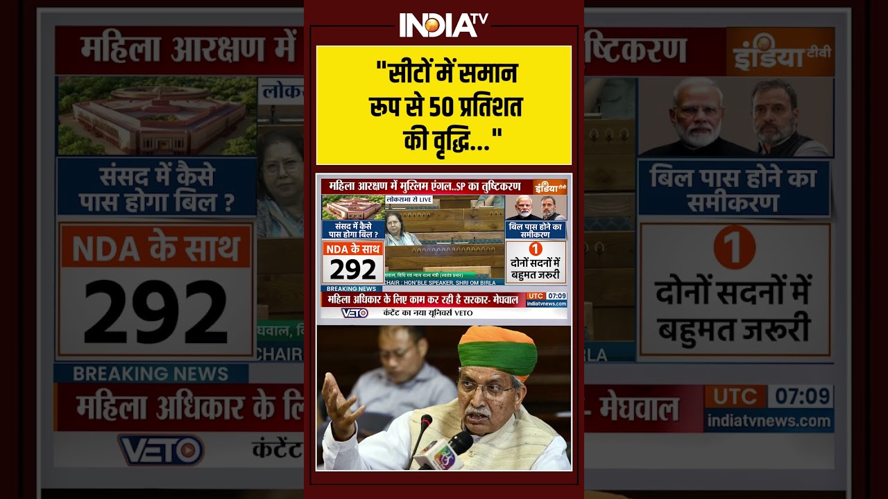 ‘सीटों में समान रूप से 50% की वृद्धि’- #arjunrammeghwal #womenreservationbill #parliamentsession #IndiaTV