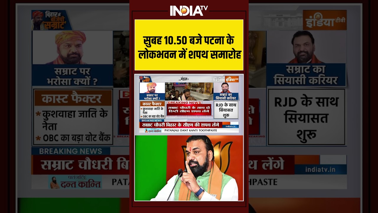 सुबह 10:50 बजे पटना के लोकभवन में शपथ समारोह #samratchaudhary #biharnewcm #oathceremony #ytshorts #IndiaTV
