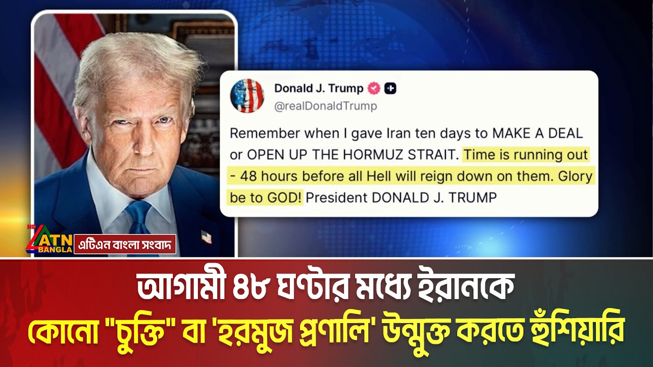 আগামী ৪৮ ঘণ্টার মধ্যে ইরানকে কোনো “চুক্তি” বা ‘হরমুজ প্রণালি’ উন্মুক্ত করতে হুঁশিয়ারি । ATN Bangla #ATNBanglaNews