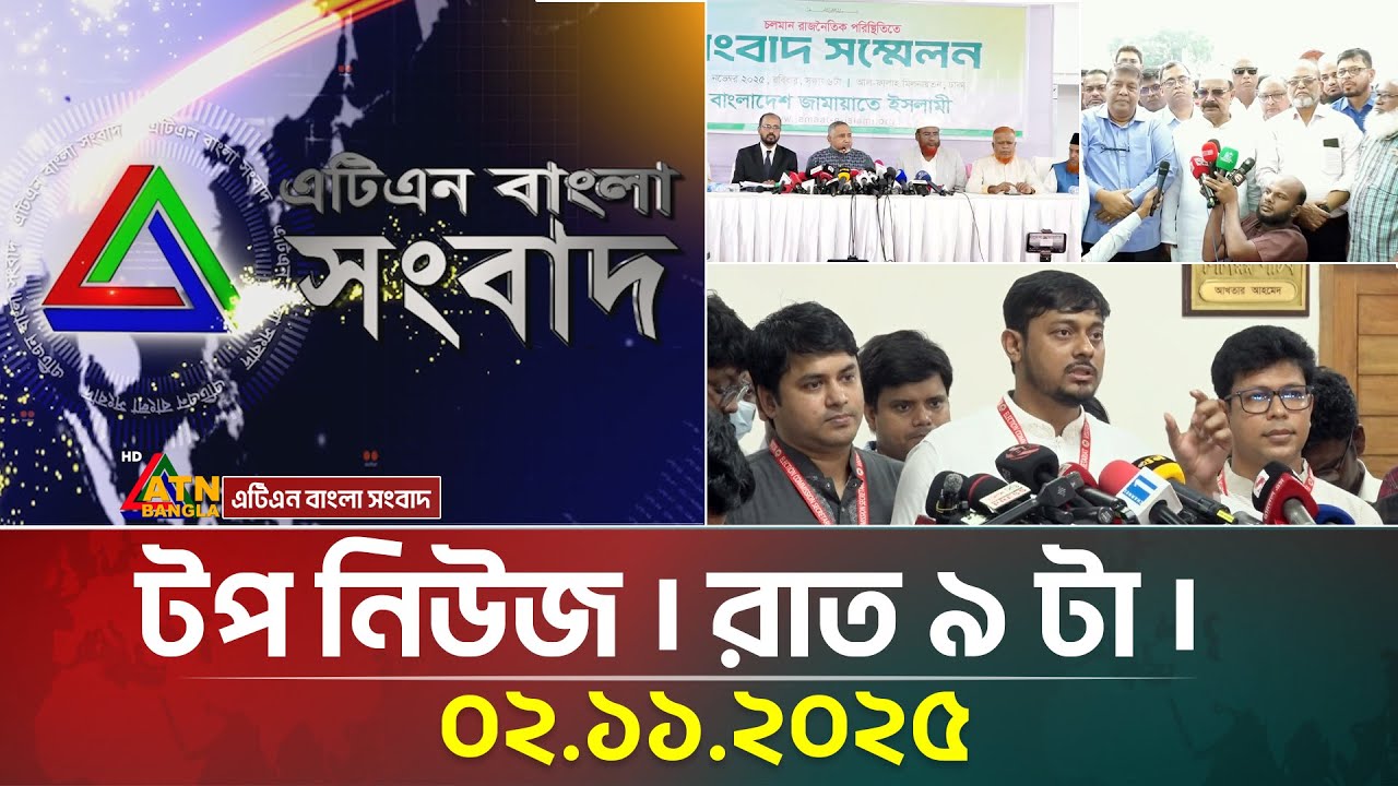 এটিএন বাংলার টপ নিউজ । রাত ৯ টা । 02.11.2025 | Top News | Today News | ATN Bangla News #ATNBanglaNews