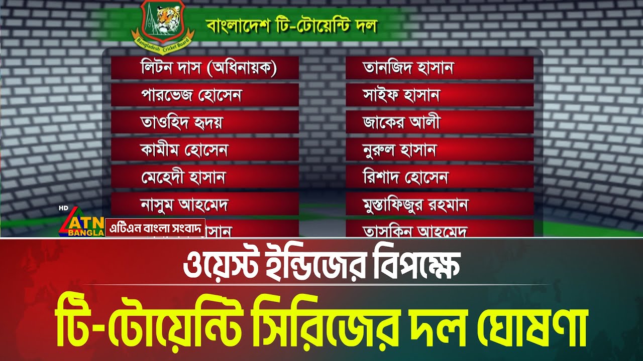 ওয়েস্ট ইন্ডিজের বিপক্ষে তিন ম্যাচ টি-টোয়েন্টি সিরিজের প্রথম দুই ম্যাচের জন্য ১৫ সদস্যের দল ঘোষণা । #ATNBanglaNews