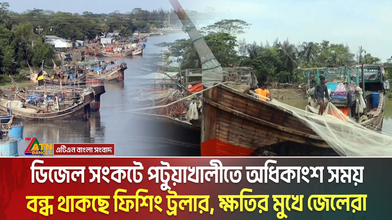 ডিজেল সংকটে পটুয়াখালীতে অধিকাংশ সময় বন্ধ থাকছে ফিশিং ট্রলার, ক্ষতির মুখে জেলেরা | Fishing Boat #ATNBanglaNews