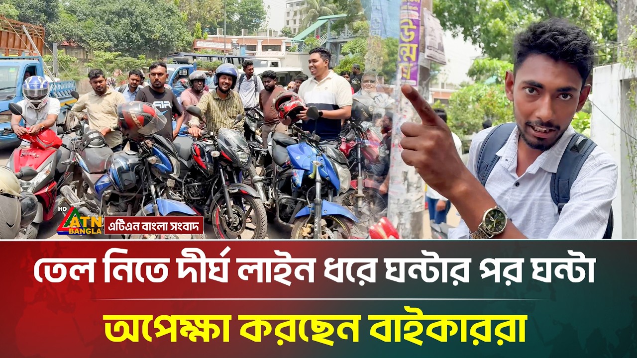 তেল নিতে দীর্ঘ লাইন ধরে ঘন্টার পর ঘন্টা অপেক্ষা করছেন বাইকাররা | Oil | Fuelcrisis | ATN Bangla News #ATNBanglaNews