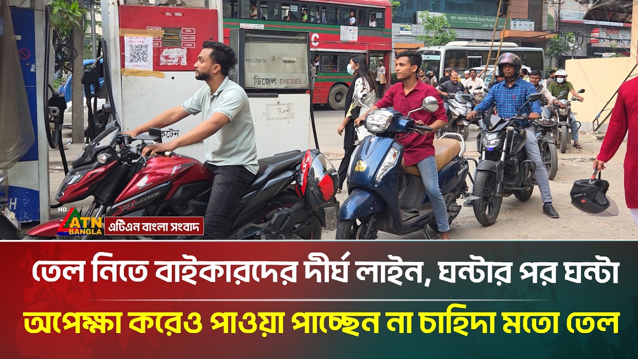 তেল নিতে বাইকারদের দীর্ঘ লাইন, ঘন্টার পর ঘন্টা অপেক্ষা করেও পাওয়া পাচ্ছেন না চাহিদা মতো তেল #ATNBanglaNews