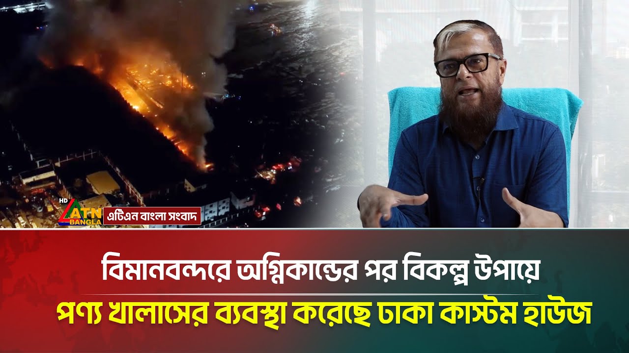 বিমানবন্দরে অগ্নিকান্ডের পর বিকল্প উপায়ে পণ্য খালাসের ব্যবস্থা করেছে ঢাকা কাস্টম হাউজ | Airport #ATNBanglaNews