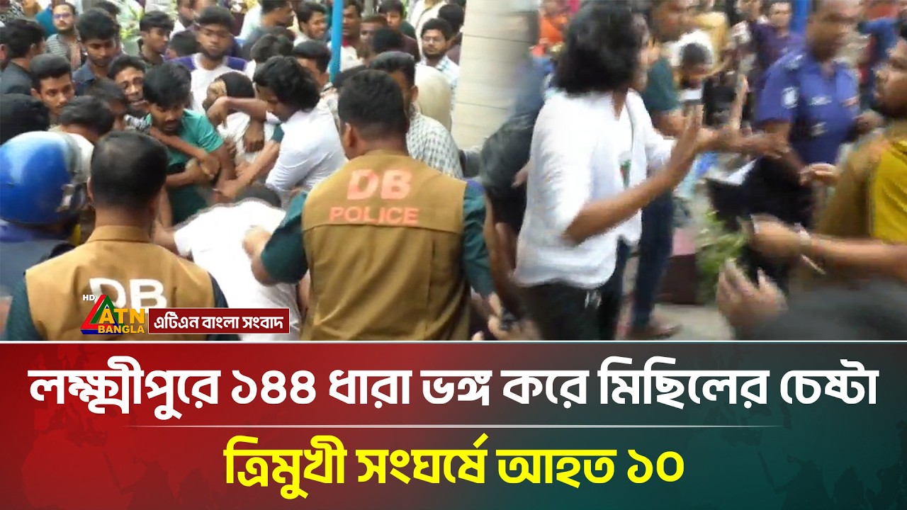 লক্ষ্মীপুরে ১৪৪ ধারা ভঙ্গ করে মি/ছিলের চেষ্টা, ত্রিমুখী সং/ঘর্ষে আ/হত ১০ | ATN Bangla News #ATNBanglaNews