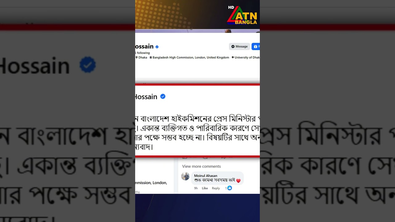 লন্ডনে বাংলাদেশ হাইকমিশনের প্রেস মিনিস্টার পদত্যাগ করেছেন #atn #atnbangla #atnbanglanews #ATNBanglaNews