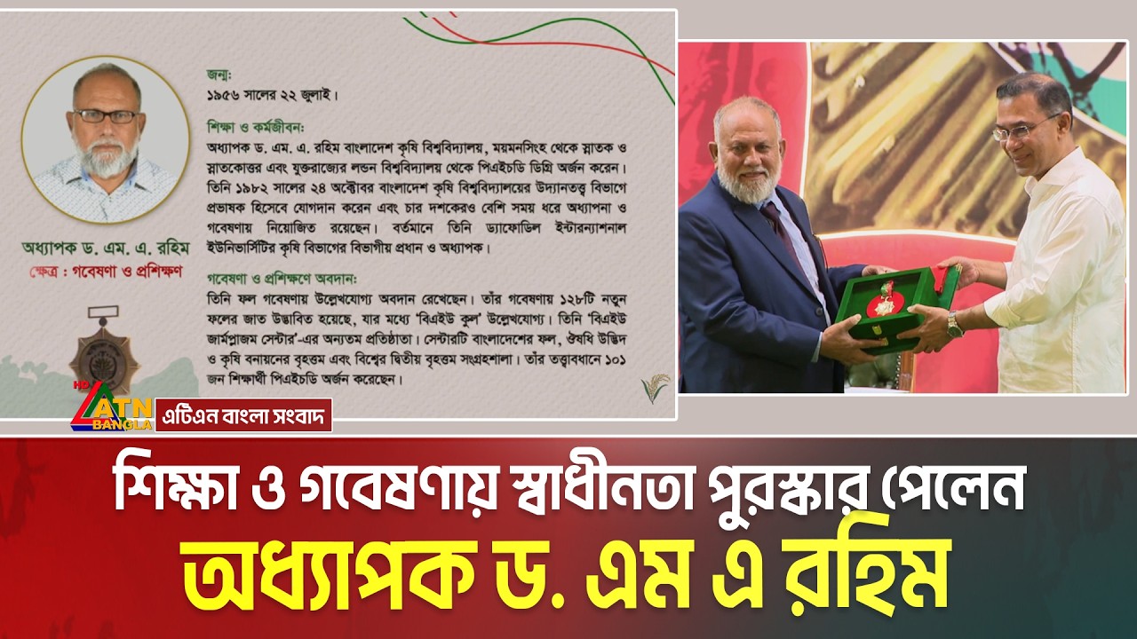 শিক্ষা ও গবেষণায় স্বাধীনতা পুরস্কার পেলেন অধ্যাপক ড. এম এ রহিম | Professor Dr. M A Rahim #ATNBanglaNews