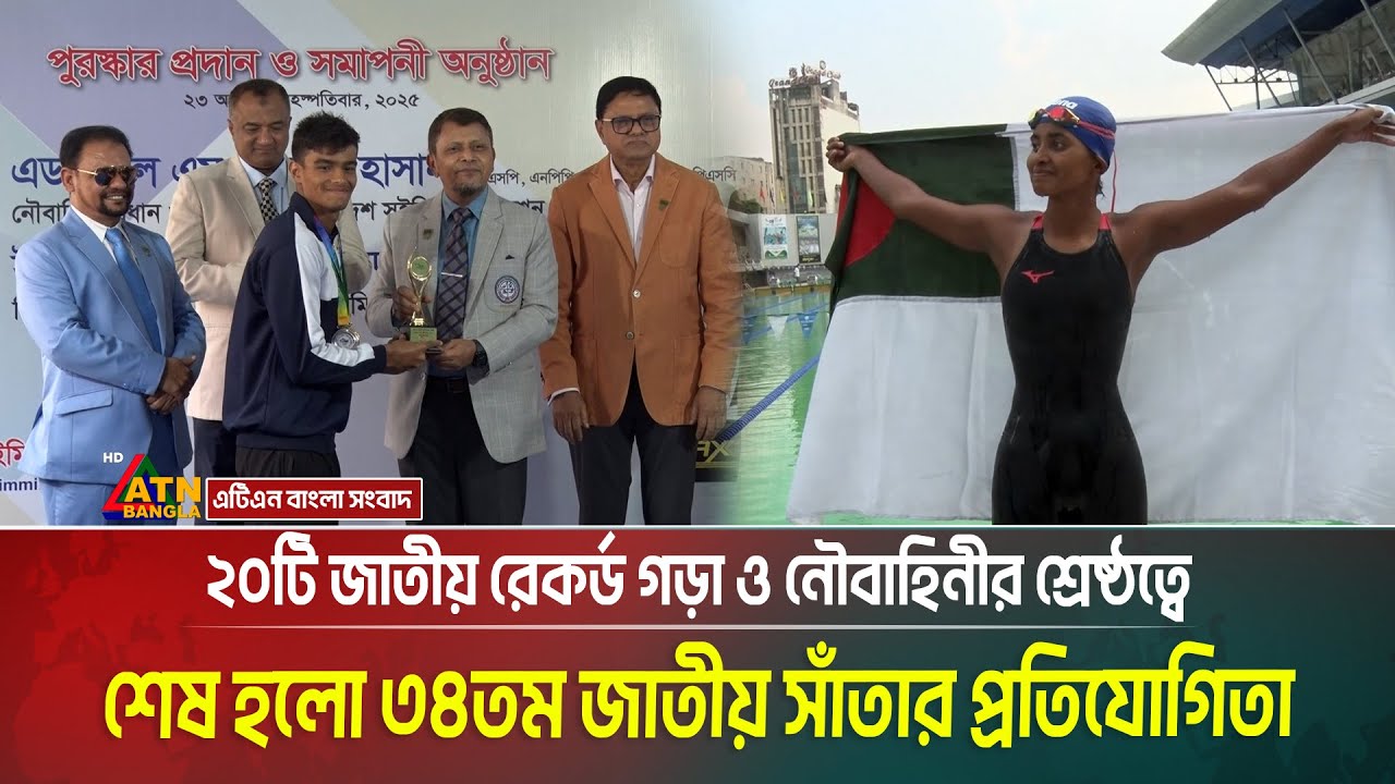 ২০টি জাতীয় রেকর্ড গড়া এবং বাংলাদেশ নৌবাহিনীর শ্রেষ্ঠত্বে শেষ হলো ৩৪তম জাতীয় সাঁতার প্রতিযোগিতা। #ATNBanglaNews