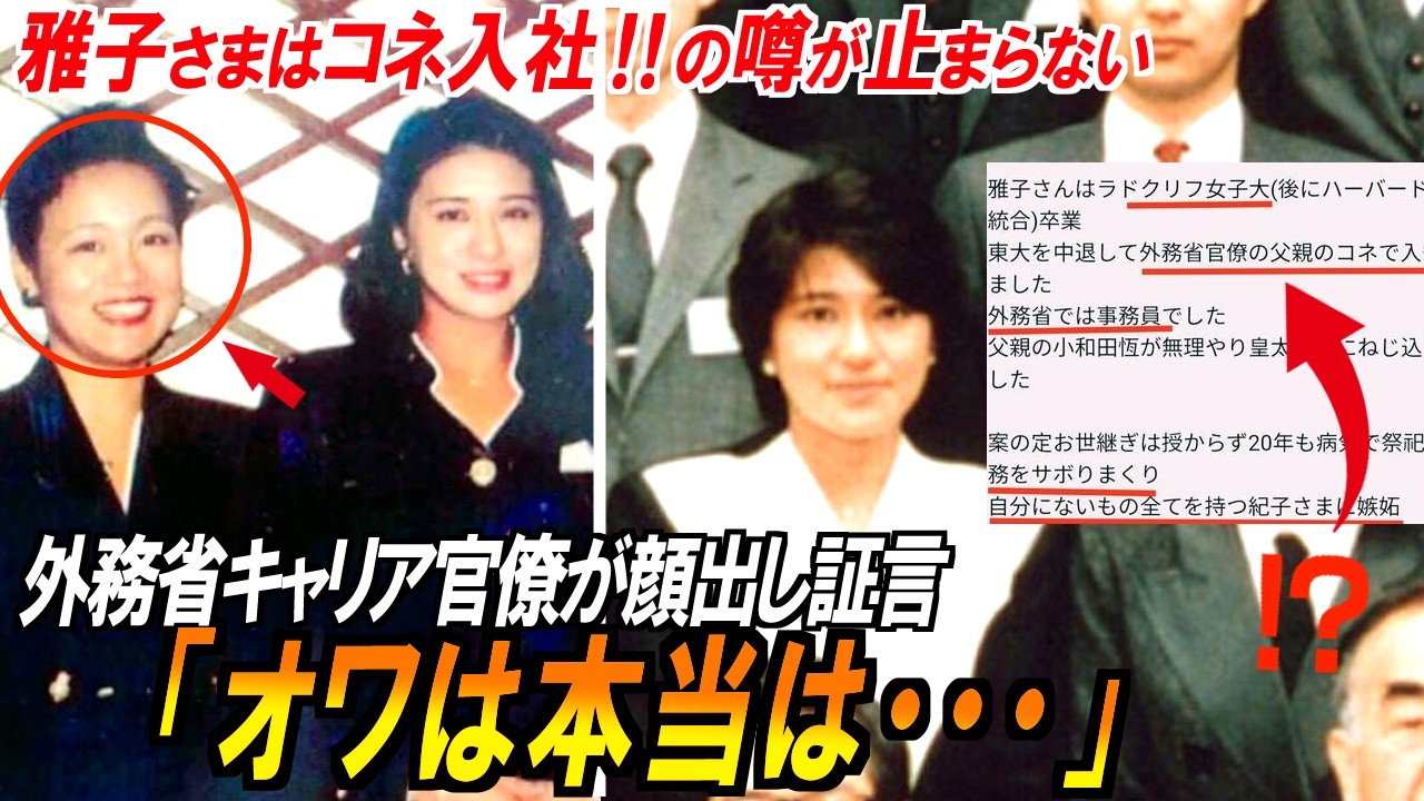 【コネ入社と紀子様に嫉妬?】いつまでも止まない皇后雅子様独身時代の噂⋯その時、当時の同僚が重たい口を開いた #愛子さま