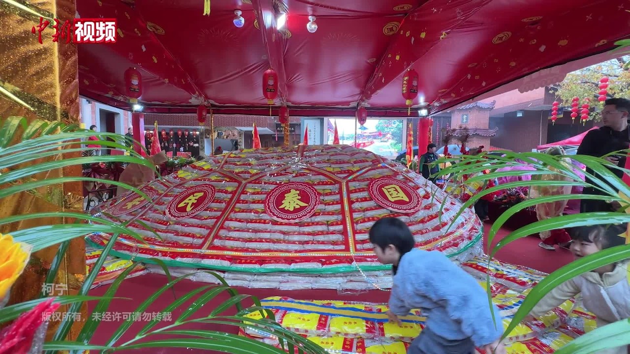 “乞龟”是闽南地区特有的元宵民俗活动,主要流行于泉州和台湾澎湖一带。民众将一袋袋大米堆成“米龟”,通过从头到尾摸遍“米龟”各个部位,祈求新的一年国泰民安、家庭幸福。