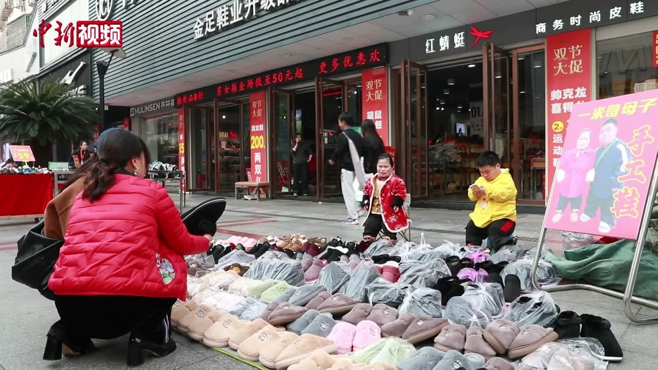 在湖南宁乡步行街,每逢天气好时,都能看到一对身高不足一米的母子在摆摊售卖棉布鞋。他们卖的并非批发进货的成品鞋,而是母子二人与同样身患残疾的工友们,一针一线亲手缝制的手工鞋。