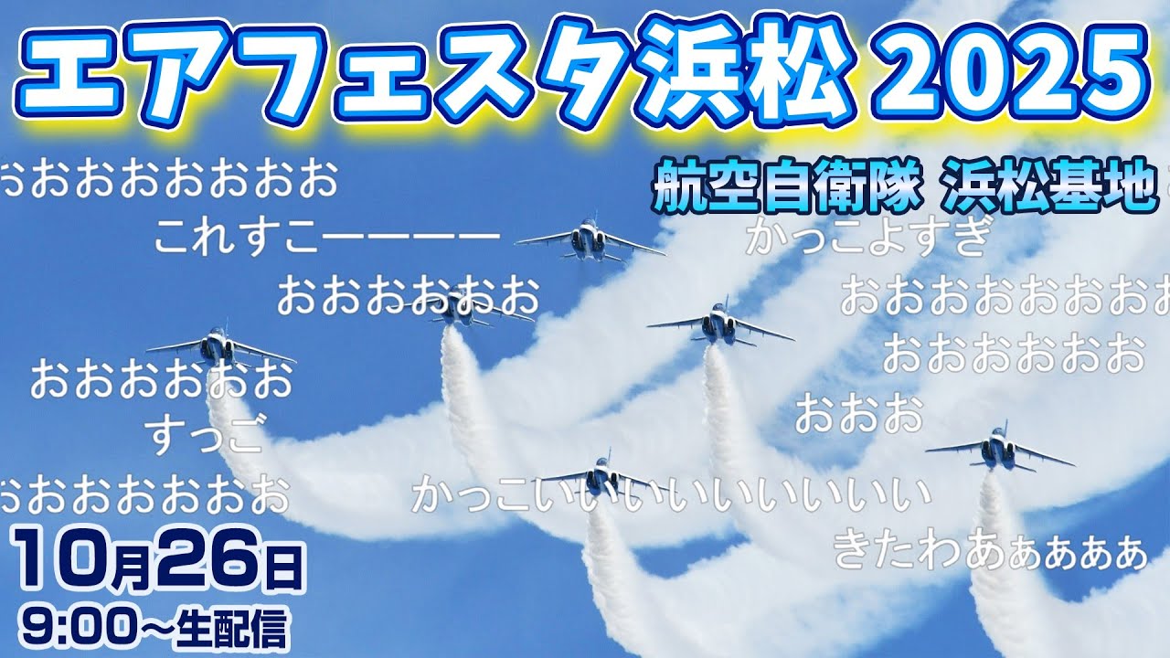 【静岡県 浜松基地でブルーインパルスが曲技飛行】エアフェスタ浜松2025をLIVE配信