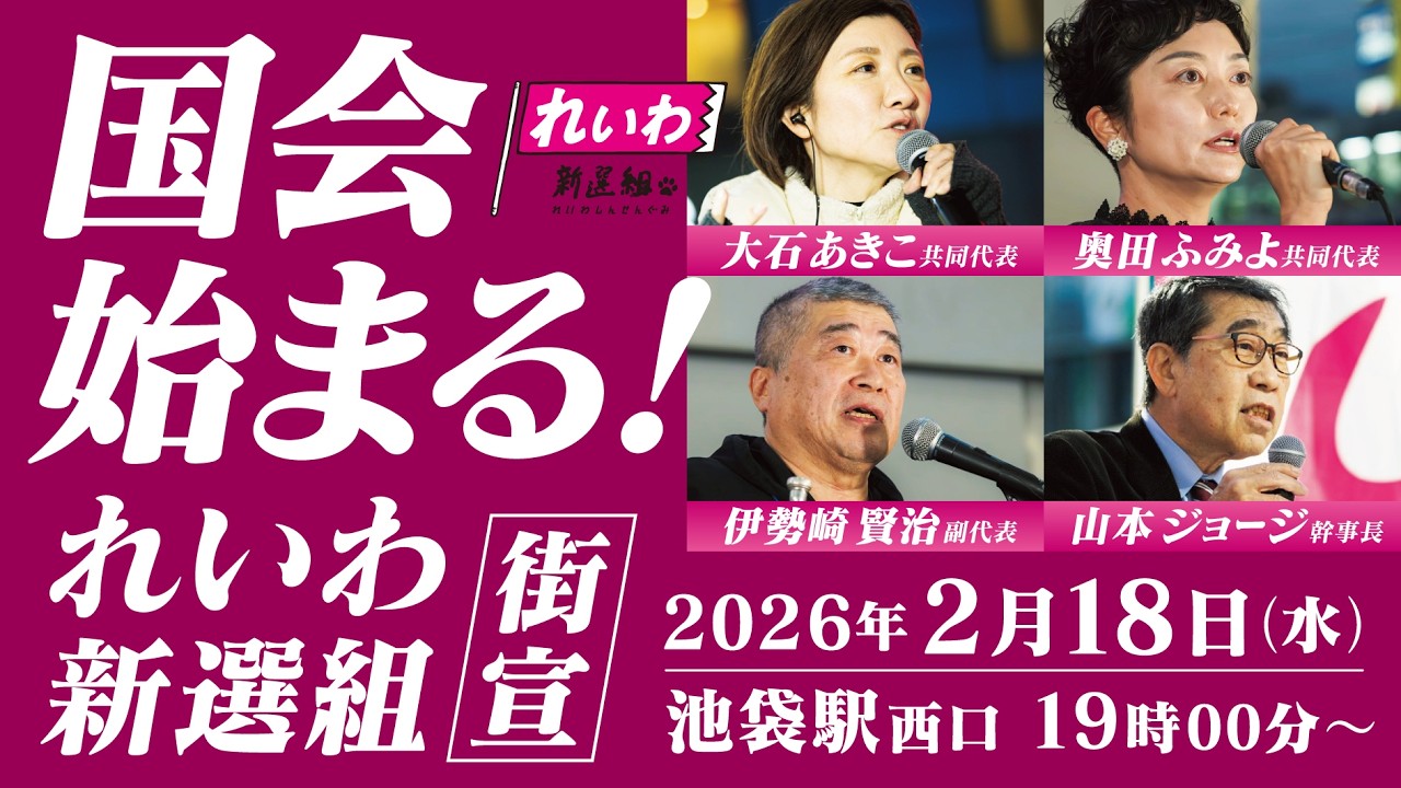 #れいわ新選組 【LIVE】国会始まる! れいわ新選組 街宣 大石あきこ・奥田ふみよ 共同代表、伊勢崎賢治 副代表、山本ジョージ 幹事長(2月18日 19時~ 東京都・池袋駅西口)