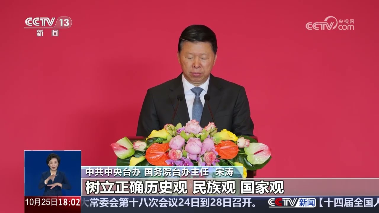 台湾光复是中国政府恢复对台湾行使主权的重要铁证,是台湾作为中国一部分的历史事实和法理链条的重要一环,是两岸同胞的共同荣光和全体中华儿女共同的民族记忆。10月24日,十四届全国人大常委会第十八次会议作出决定,以法律形式将10月25日设立为台湾光复纪念日,并规定国家通过多种形式举行纪念活动。(视频来源:中央广播电视总台)