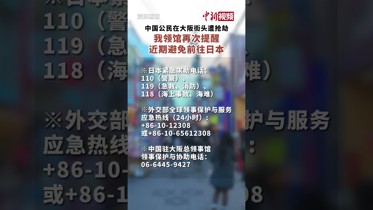 中国公民在日本大阪遭袭背包被劫 再次提醒:近期避免赴日 #中国新闻社