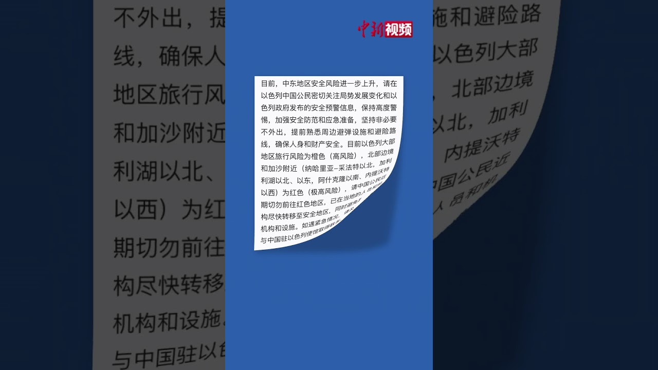 #中国驻以色列使馆 :#提醒在以中国公民密切关注安全形势变化 #以色列 #美国 #中国新闻社