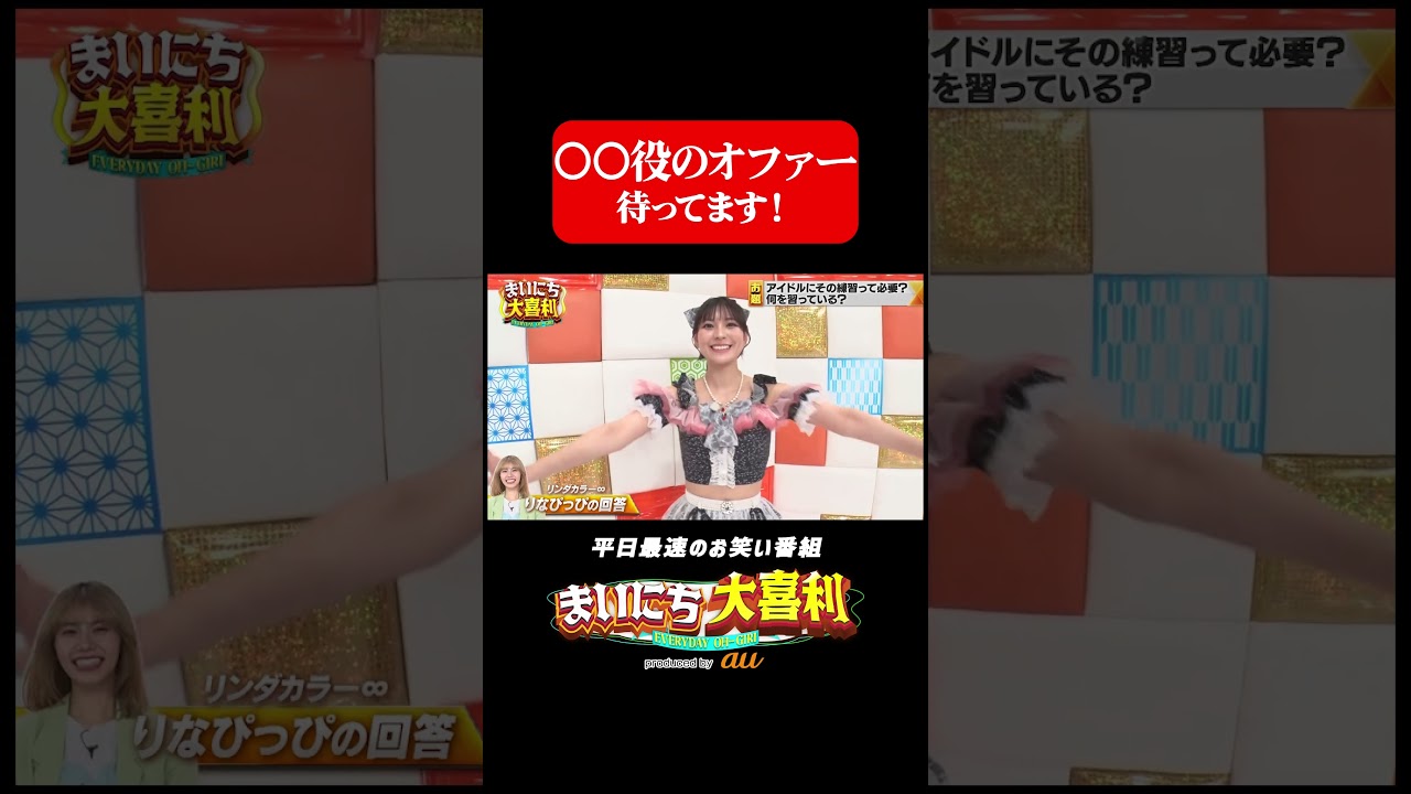 〇〇役のオファー待ってます!#まいにち大喜利 #おすすめバラエティ #リンダカラー∞ #りなぴっぴ #きゅ〜くる #花城奈央 #モグライダー