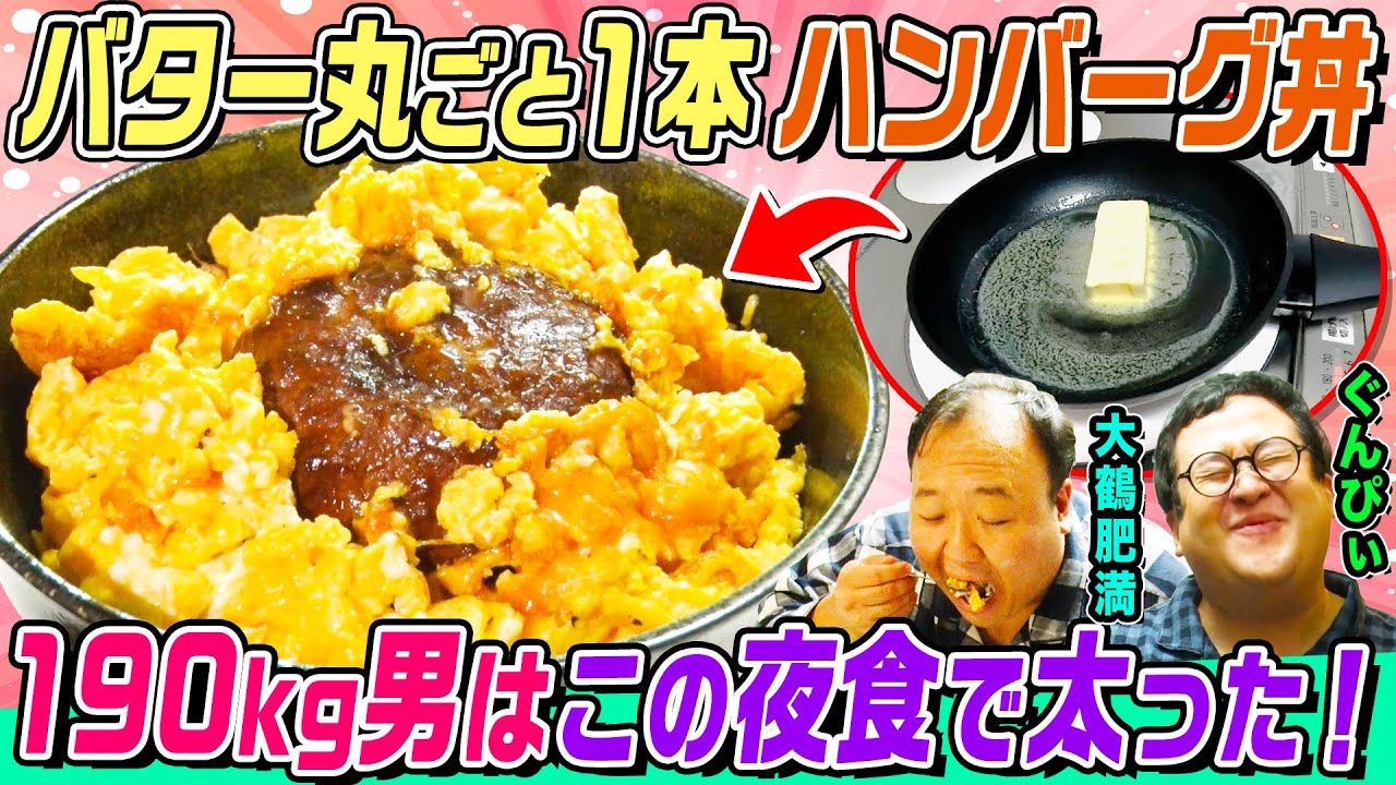 #動画はじめてみました 【お泊まり背徳夜食】肥満&ぐんぴぃ合計体重300kgを作った激ウマ夜食を作って食べる!バター&チーズ大量のハンバーグ丼やコンビーフの衝撃メシ&本格抹茶スイーツ|背徳フライデー