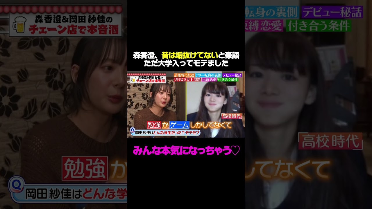 #動画はじめてみました 【垢抜けてない時代】森香澄が告白「全くモテなかった!だけど大学で…」/ #森香澄の全部嘘テレビ #森香澄 #岡田紗佳 #shorts