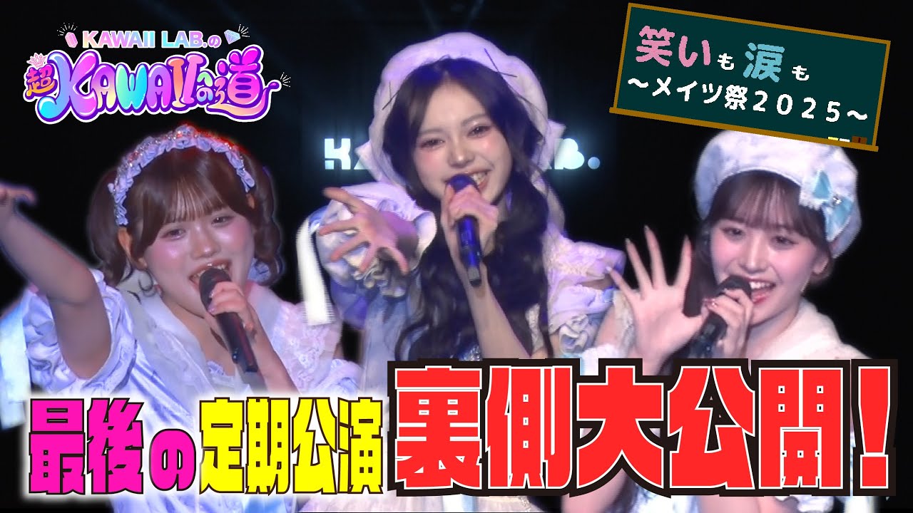 12名のメンバーで行う涙のラストライブの裏舞台に密着、、、初お披露目となる新入生も登場、、、涙あり笑いあり!!普段は見られないKAWAII LAB. MATESの思い思いな表情が見られるので最後までお見逃しなく👀