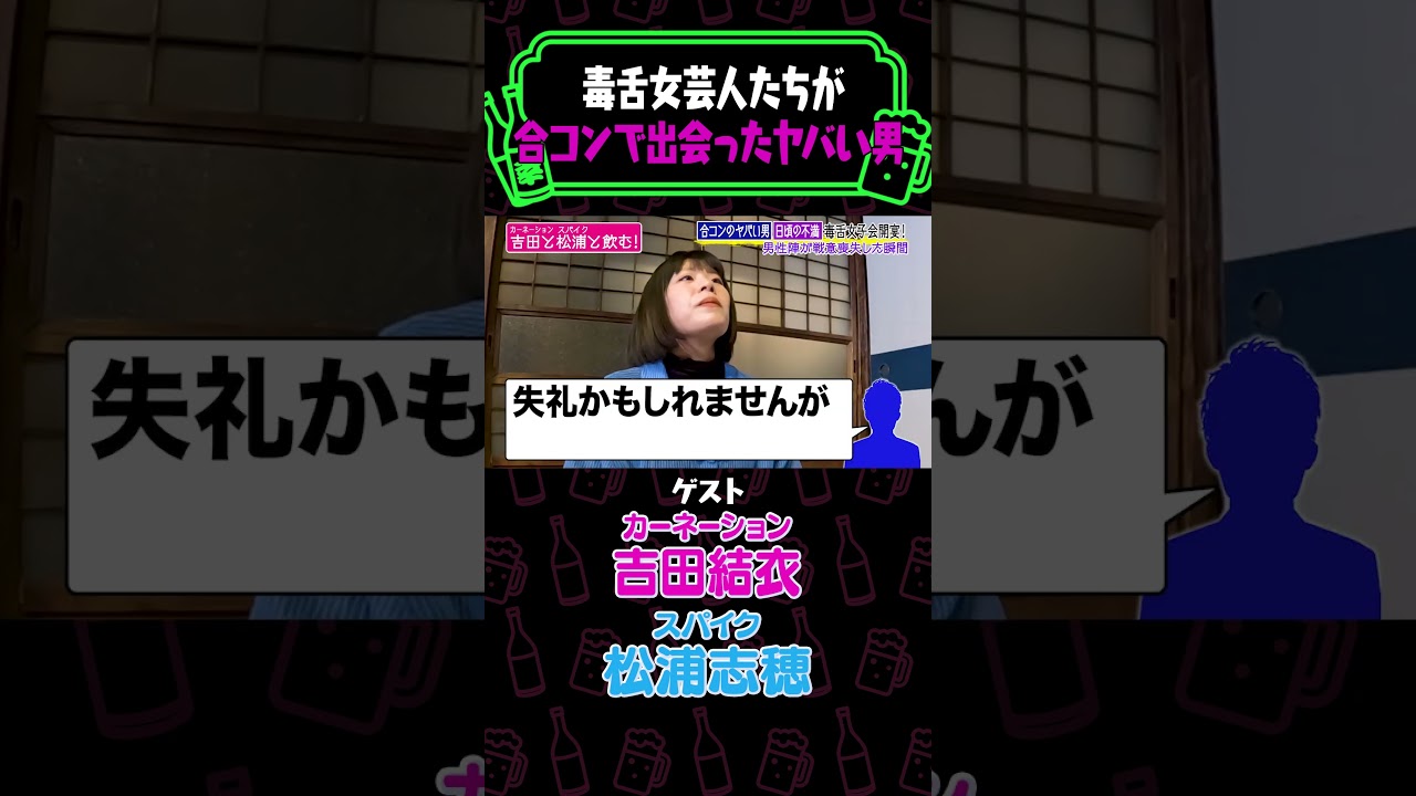 【毒舌】女芸人合コンの衝撃裏話!激ヤバ男のボケに毒舌炸裂!一同爆笑の吉田のタイプとは!?【やさぐれ酒場】お酒片手にぜひ!#Shorts