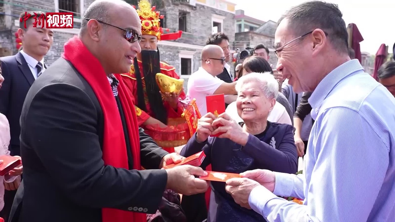 化身“财神爷”派红包!瑙鲁总统回广东江门省亲过年 #中国新闻社