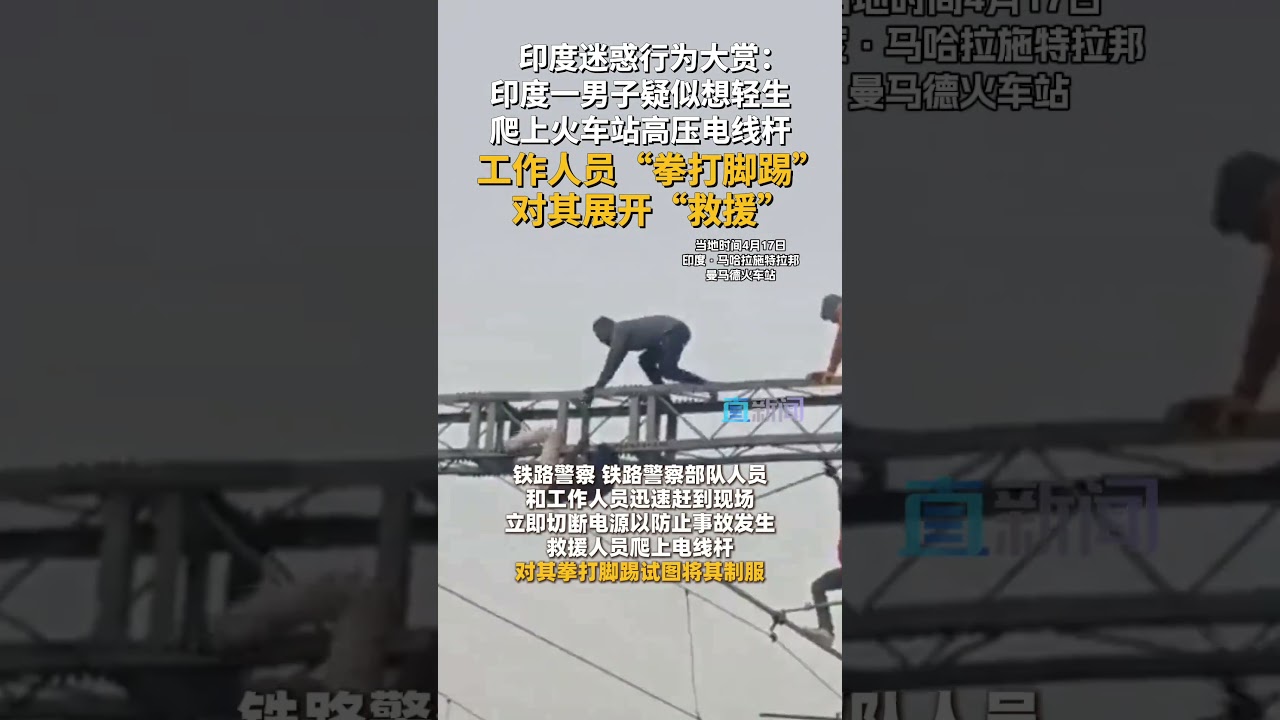 印度轻生男子被救援人员暴揍 #中国新闻社