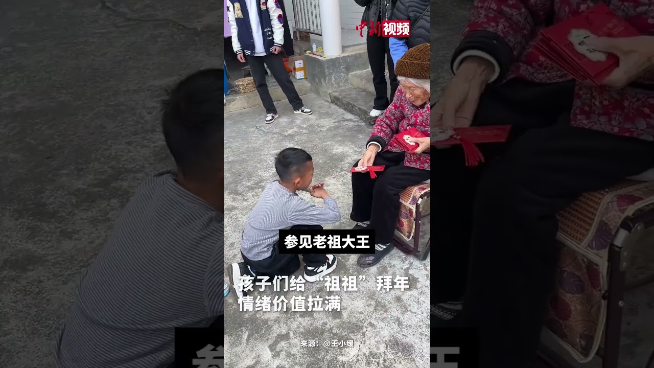 “参见老祖大王!祝你天天美丽!”孩子们给“祖祖”拜年情绪价值拉满 #中国新闻社