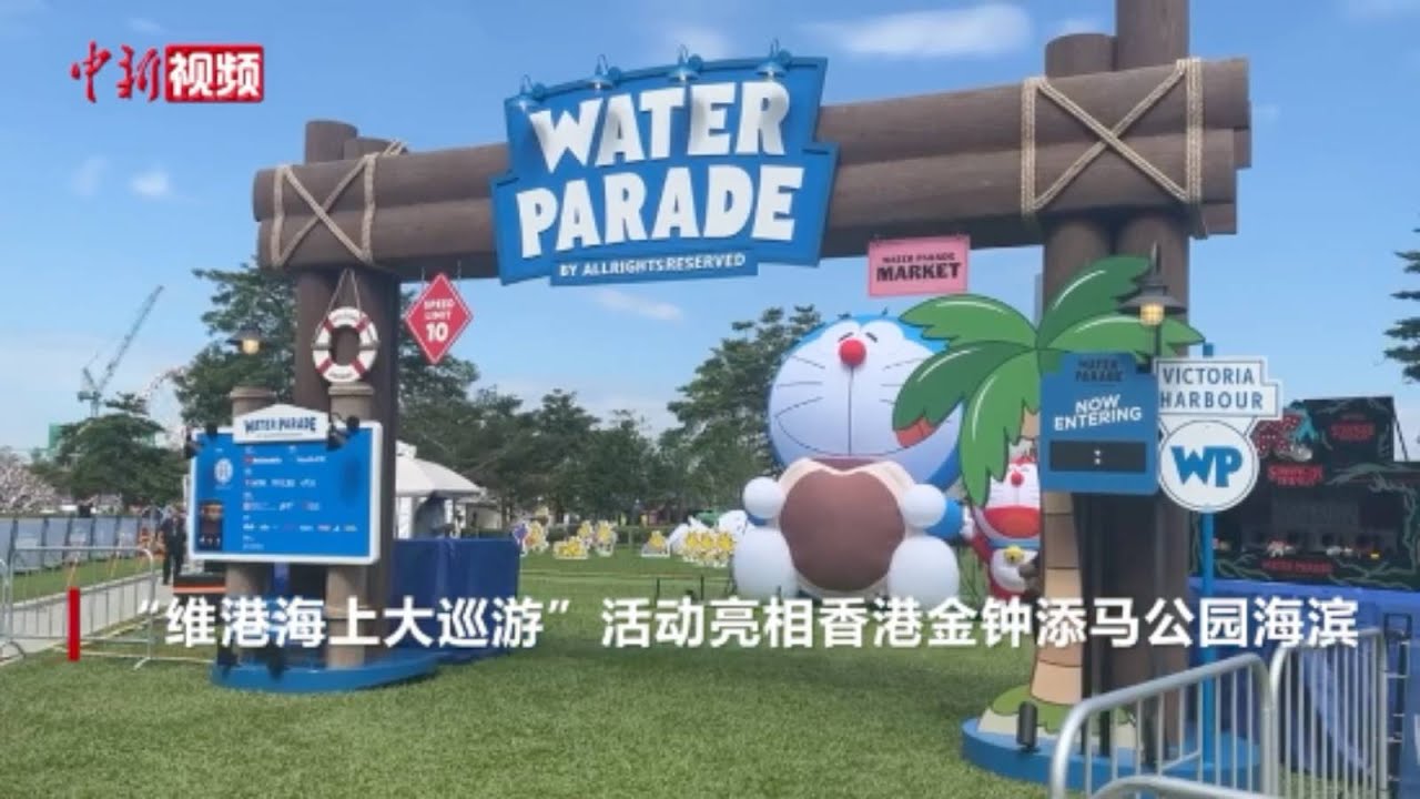 “哆啦A梦”“LABUBU”巨型充气雕塑亮相维港 #中国新闻社