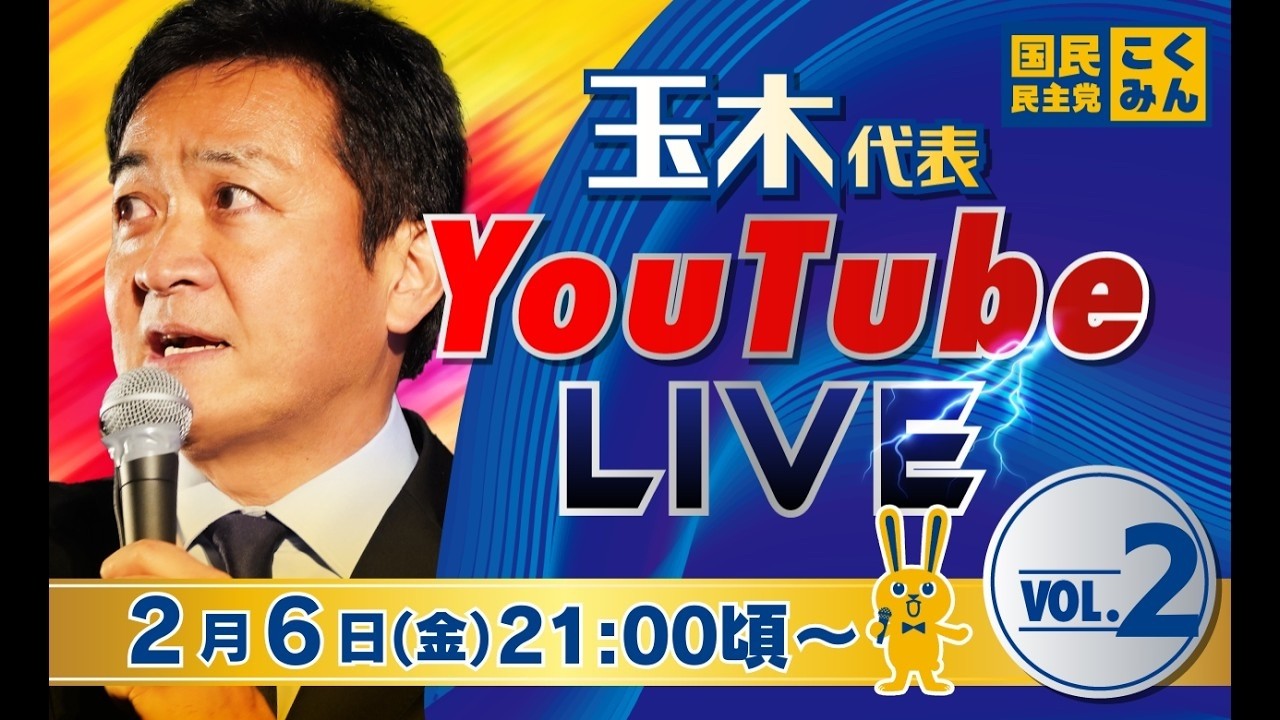 #国民民主党 【録画・完全版】玉木代表LIVE配信 vol.2 2/6(金)21:00頃スタート