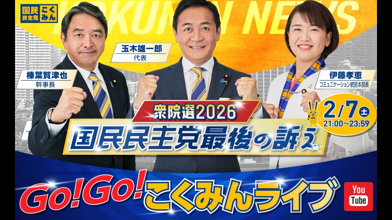 #国民民主党 Go!Go!こくみんライブ~衆院選2026 国民民主党最後の訴え~ #玉木雄一郎 #榛葉賀津也 #伊藤たかえ ~