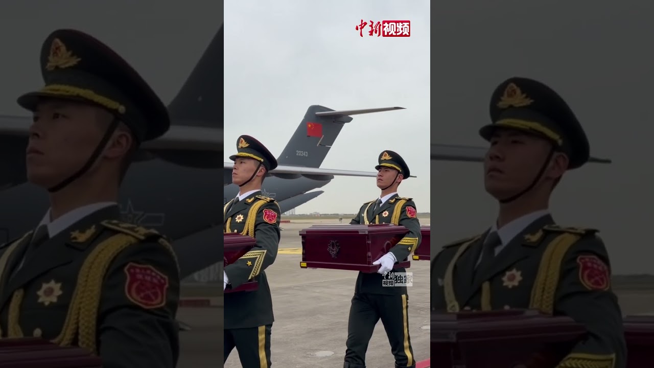 在韩志愿军烈士遗骸交接仪式举行 中国驻韩国大使为烈士棺椁覆盖国旗并鞠躬