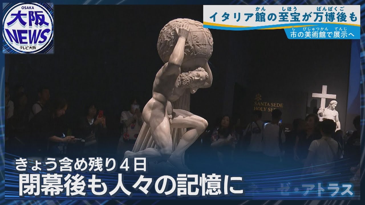 閉幕が近づき“万博ロス”の声も聞かれる中、万博の感動を未来につなぐ動きが続いています。イタリア館で展示された古代彫刻「ファルネーゼのアトラス」は、閉幕後も大阪市立美術館で特別展示されることに。また、会場で育てられたサツマイモは「安納エキスポ」「夢ミャク金時」などの名前で全国で栽培が始まる見込みです。芸術と農のレガシーが、大阪から新たな物語を紡ぎます。