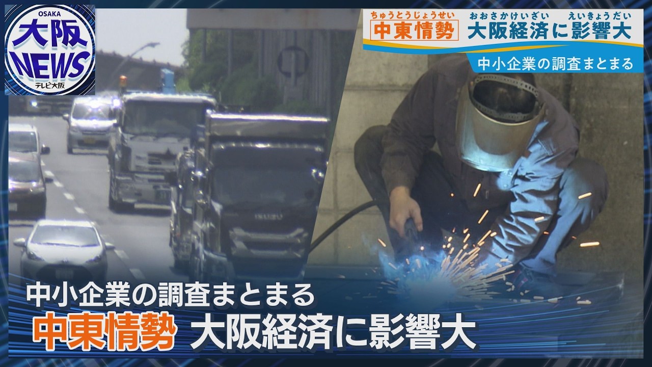中東情勢の緊迫化が大阪府内の中小企業にも影響を広げています。大阪シティ信用金庫の調査では、回答した1249社のうち52.6%が「事業に影響がある」と回答。特に運輸・通信業や製造業で影響が大きく、原材料価格の高騰を挙げる企業が約8割にのぼりました。一方で有効な対策を見いだせていない企業も多く、先行きへの不安が強まっています。