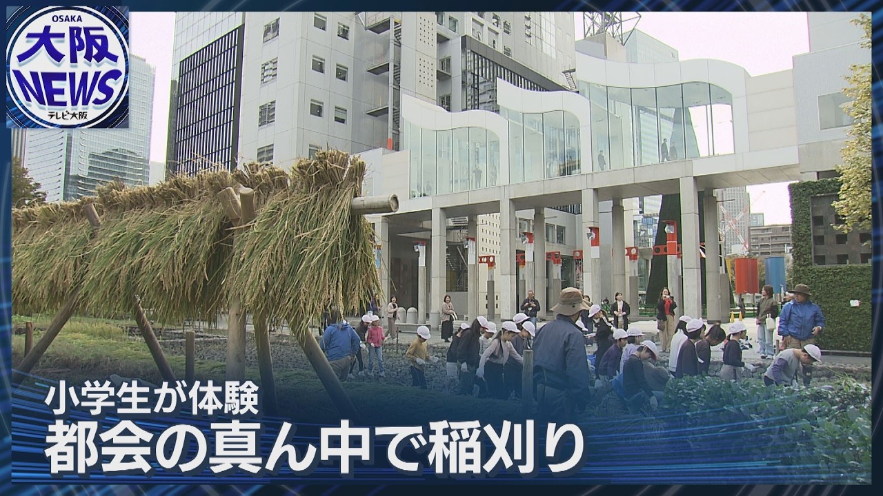 大阪・梅田スカイビルのすぐ近くで地元・大淀小学校の5年生約120人が稲刈りを体験。6月に田植えを行い、今回はその収穫です。積水ハウスが2007年から続ける社会貢献活動の一環で、都会の子どもたちに自然と触れ合う機会を提供。「面白かった」「きれいに刈り取れた」という児童たちは、この後、脱穀や調理実習を通じて収穫したお米を味わう予定です。