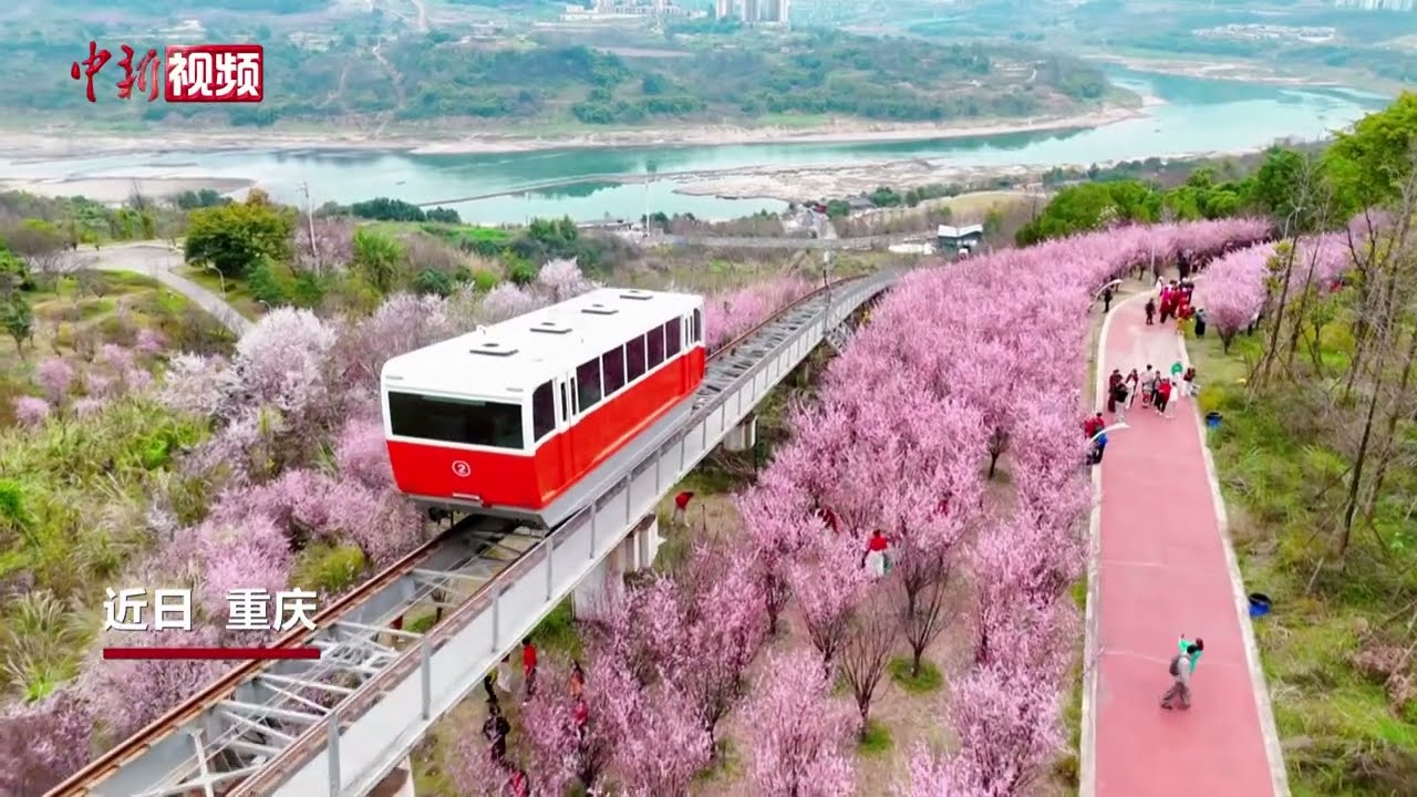 宛若坠入“童话秘境”!重庆缆车穿行粉色花海 #中国新闻社