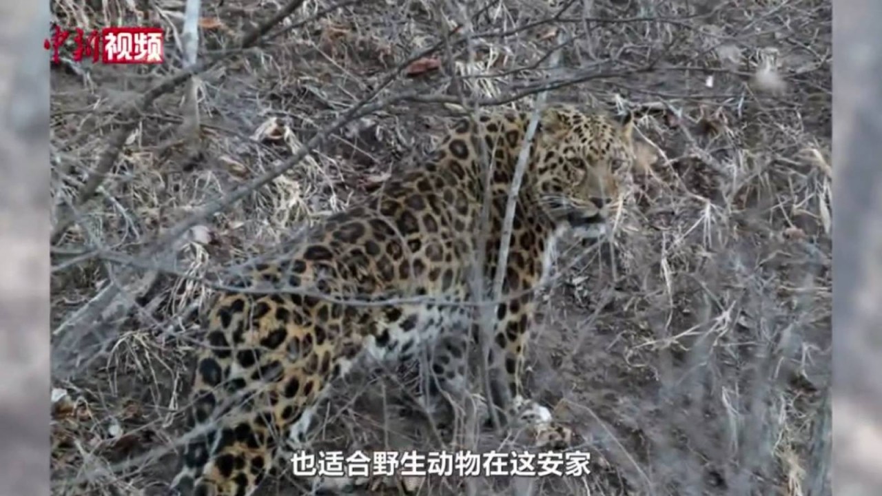 2月23日,吉林摄影师王莅翔在位于东北虎豹国家公园腹地的吉林省珲春市境内偶遇野生东北豹。据王莅翔介绍,这只东北豹从公路窜至山林后驻足回望,和他对视了数秒。(视频由王莅翔提供)