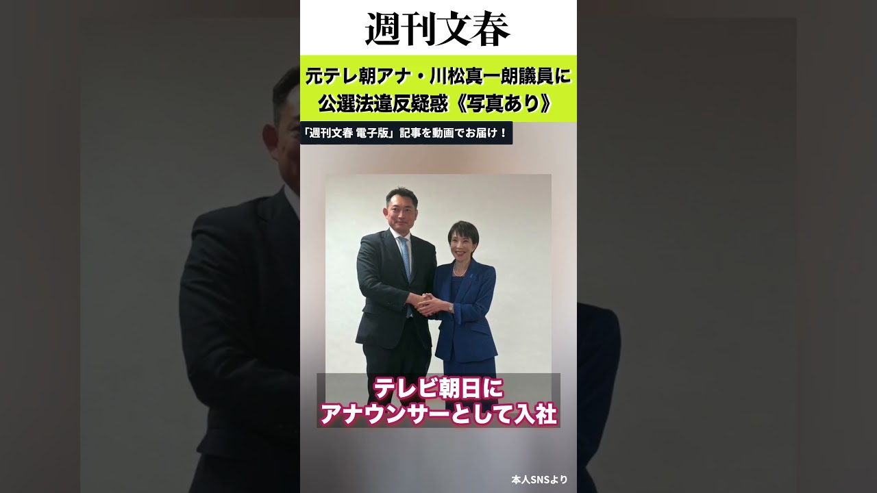 #文春 《写真あり》元テレ朝アナ・川松真一朗議員に公選法違反疑惑「陣営スタッフがタスキを…」 事務所は「今後は周知徹底させます」